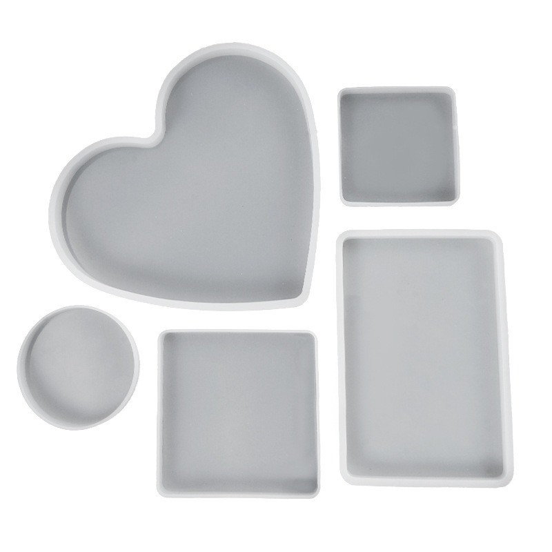 SILIKON ACUAN PELBAGAI BENTUK NIPIS COASTER - Love Heart Circle Square Oval Shape Tray Silicone Mold for Epoxy Resin Art