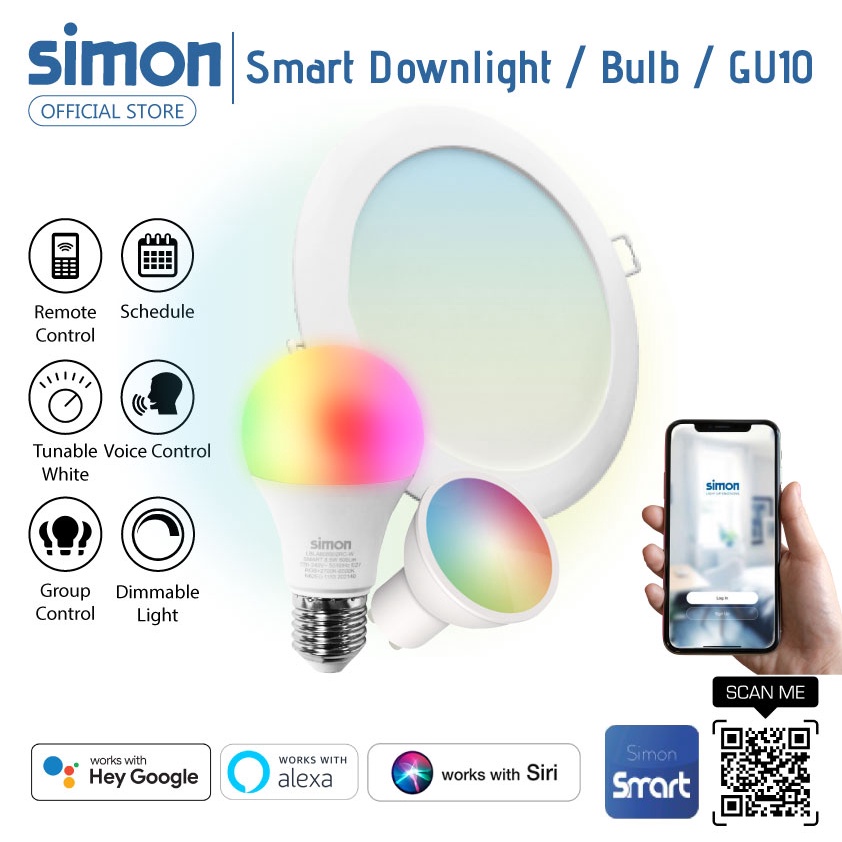 SIMON Valor Smart Lighting Downlight Tunable CCT Round /E27 Smart Bulb A60 9W / GU10 5W BULB RGB & Tunable 2700K-6500K
