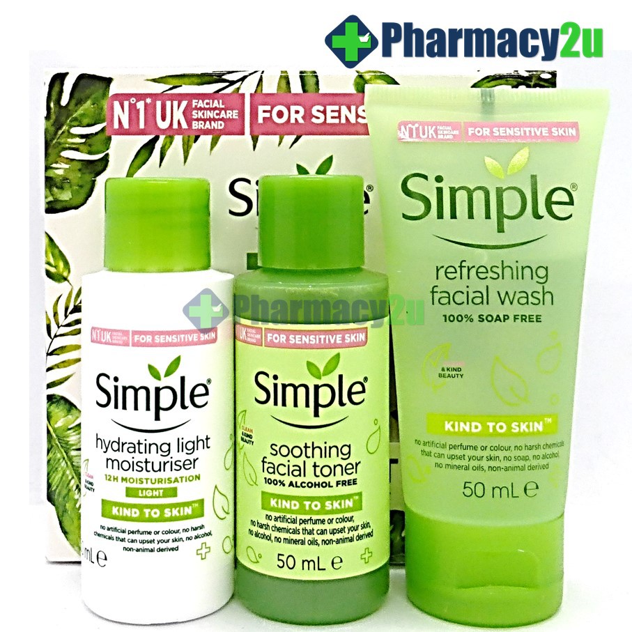 SIMPLE KIND TO SKIN 3-STEP TRIAL KIT SET 50ML FOR SENSITIVE SKIN (FACE WASH GEL/TONER/HYDRA MOIST)