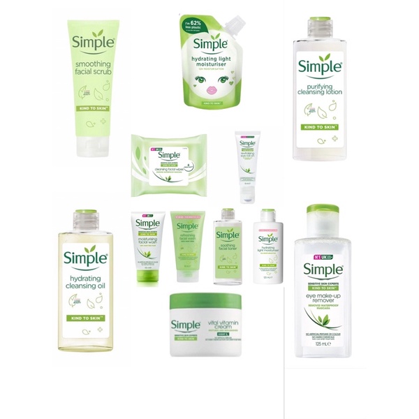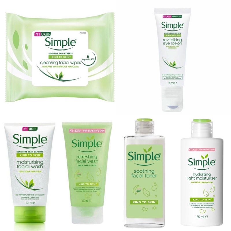 SIMPLE Soothing Facial Toner/Hydrating Light Moisturiser/Revitalising Eye Roll On/Refreshing Facewash