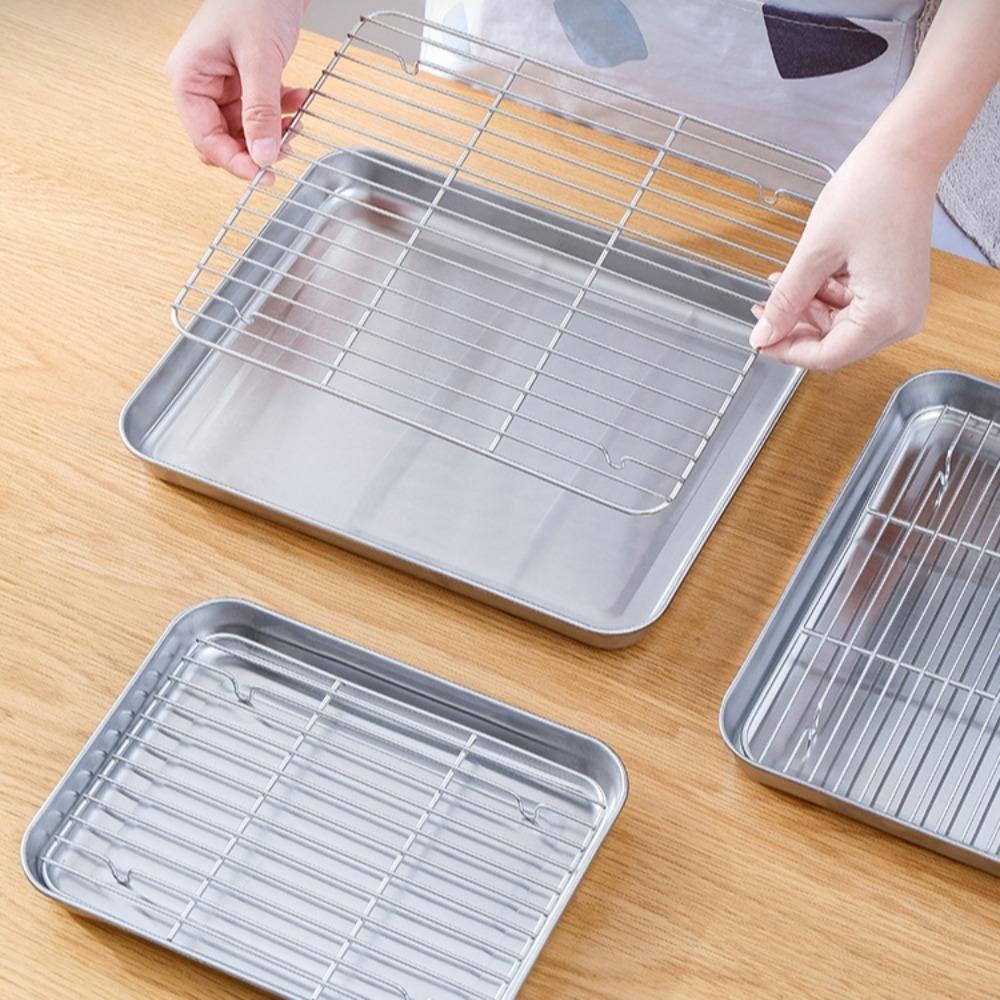 SIMPLESHOP Baking Pan Tray, Removable Stainless Steel Wire Rack, Multipurpose Cake Baking Square Nonstick Barbecue Tray Baking Tray Cooking Roasting