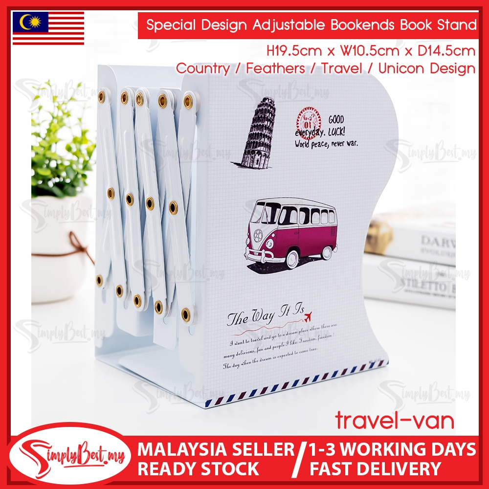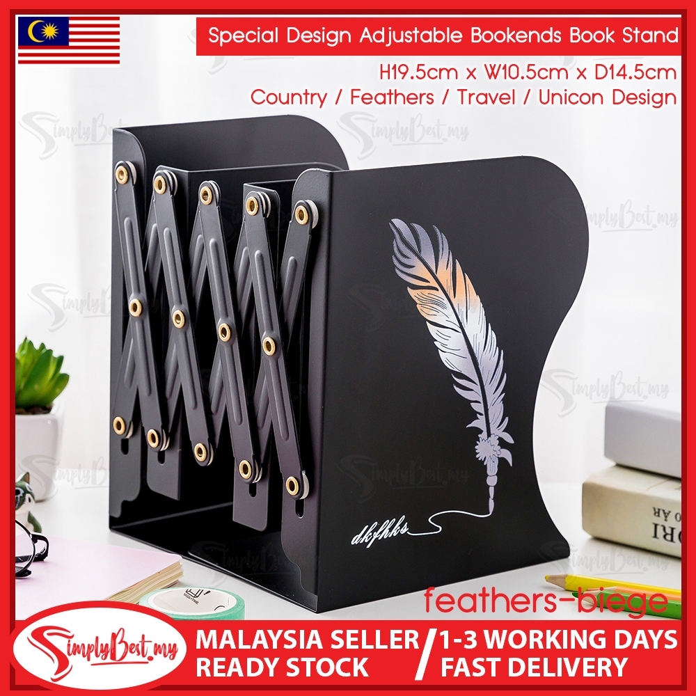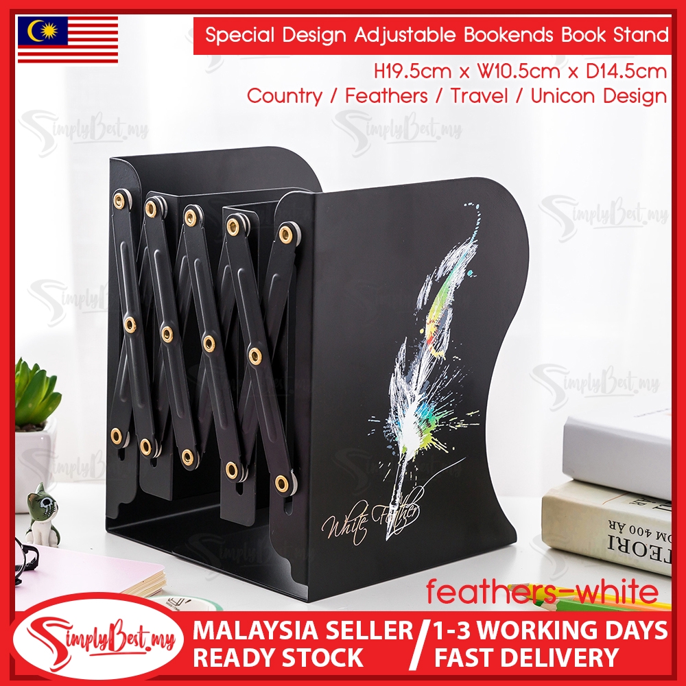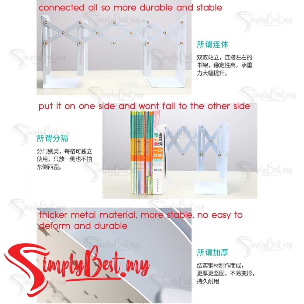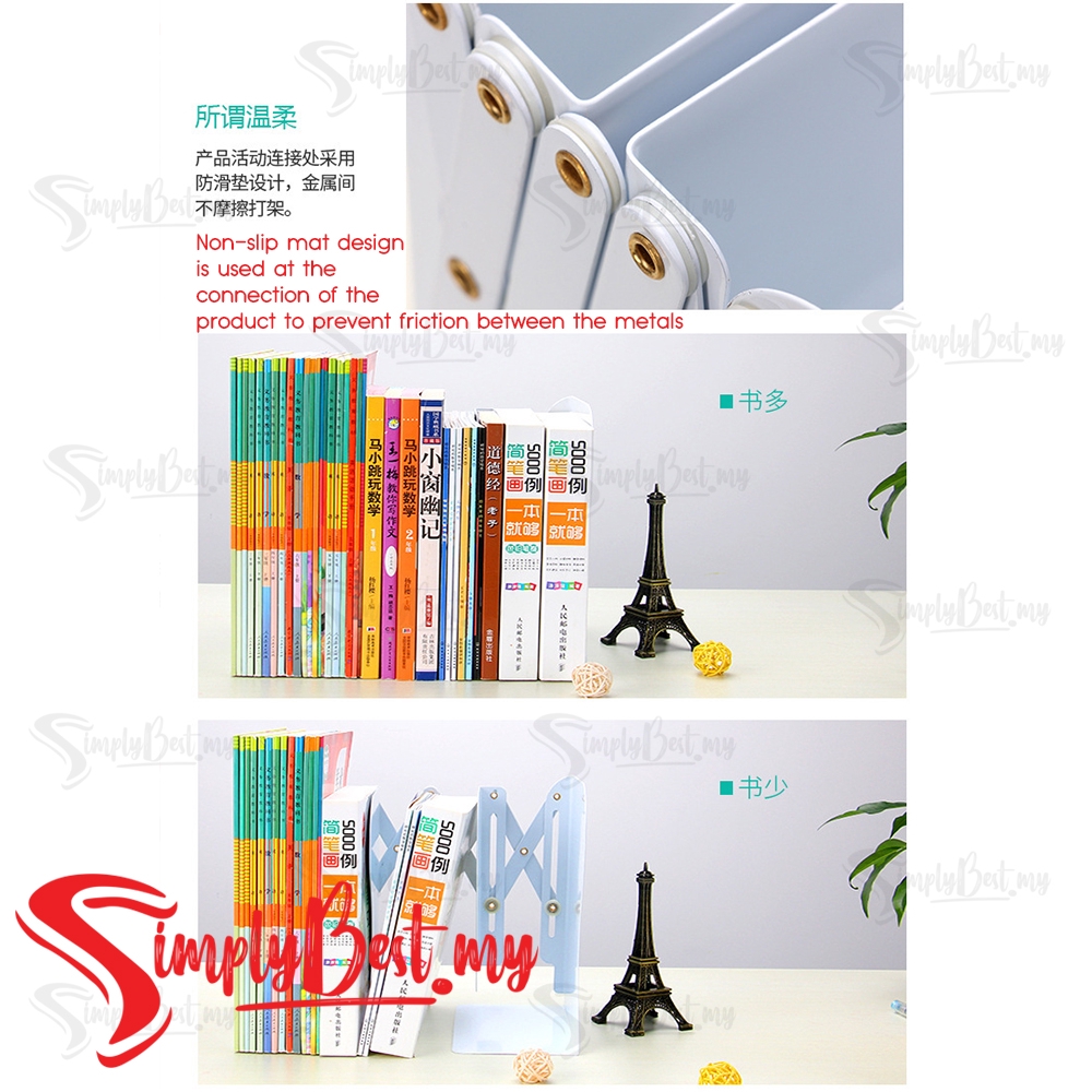 SIMPLYBEST Creative Design Bookends Adjustable Anti Skid Metal Bookends Book Shelf Anti Slip Book Stand Heavy Duty