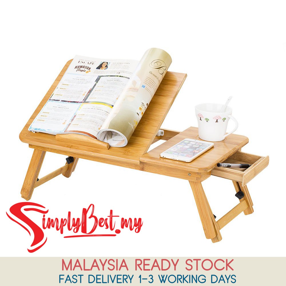 SIMPLYBEST Foldable Bamboo Laptop Desk Table Angle Adjustable Bed Serving Tray Laptop Table Notebook Coffee Breakfast