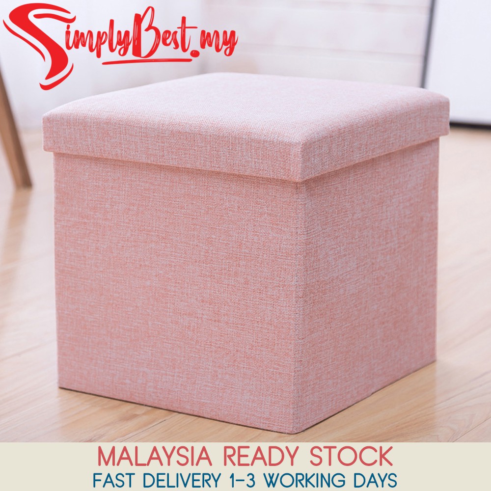 SIMPLYBEST Foldable Stool Storage Box Storage Ottoman Fabric Foot Stool Bench Seat Footrest Folding Storage Box