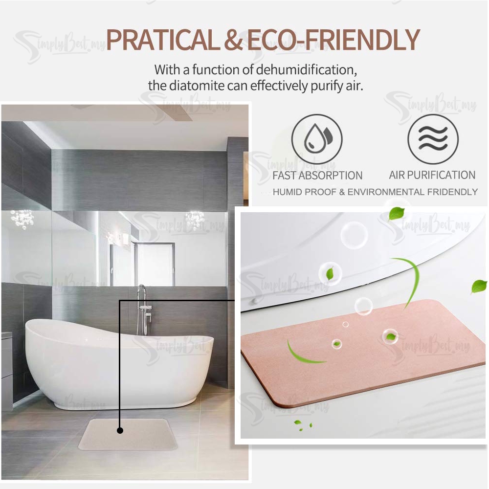 SIMPLYBEST Japan Diatomite Earth Foot Mat Anti-Slip Fast Dry Bathroom Diatomaceous Mud Mat Fast Absorbent Floor Entrance