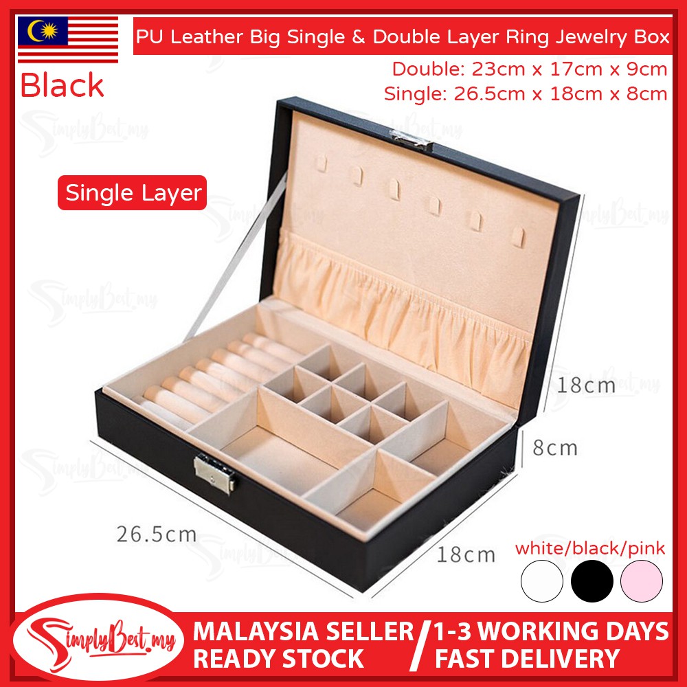 SIMPLYBEST PU Leather Jewelry Box Double Layer Jewellery Organizer Box Lockable Earring Ring Necklaces Double Tray