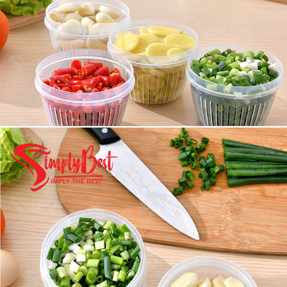SIMPLYBEST Plastic Round Vege Fresh Keeping Container for Fridge Drain Sealed Box Storage Fruit Spring Onion Organizer