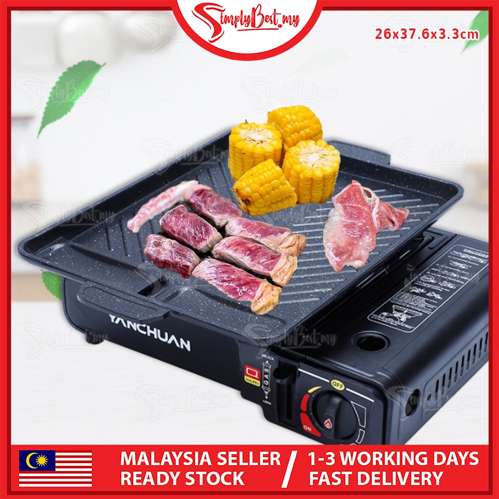 SIMPLYBEST Portable Non-Stick Grill Plate Ore Stone Portable BBQ Plate Gas Stove Griddle Pan Camping BBQ Steak Outdoor