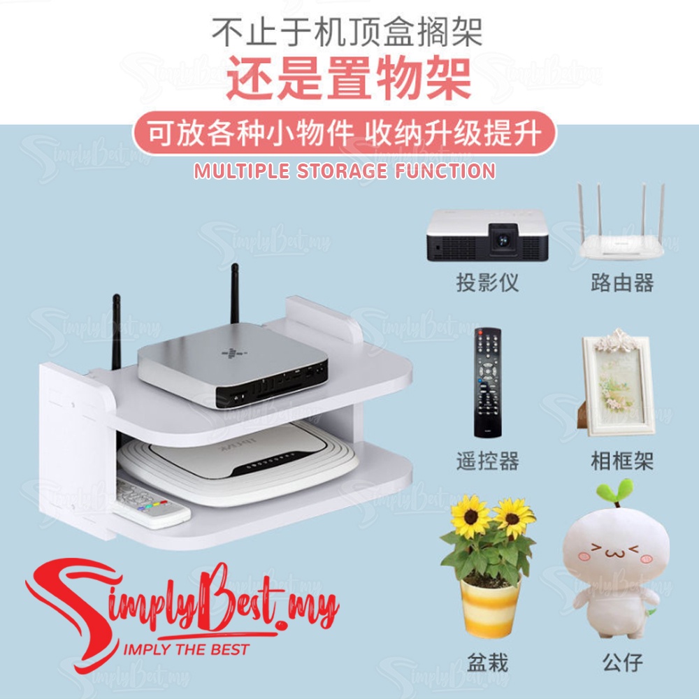 SIMPLYBEST Router Wifi Modem Wall Mounted Rack Shelves TV Player Floating Storage Box Creative Space Hanging Shelf