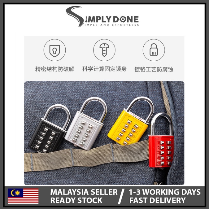 SIMPLYDONE SILVER 10 Digit Push Button Password Lock Chrome Plated Anti-theft Combination Padlock Push Password Locker