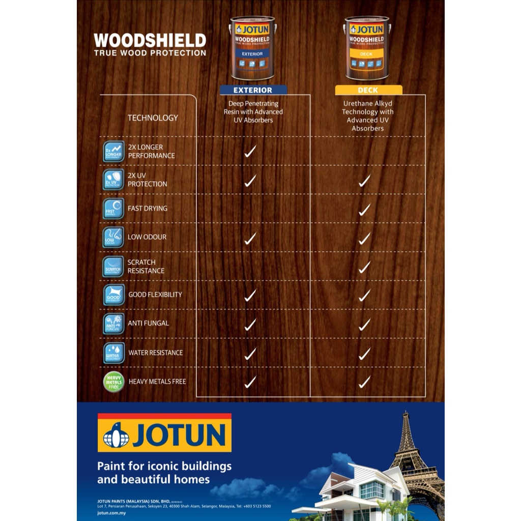 SINAR JOTUN WOODSHIELD EXTERIOR 5 LITER SHELLAC & VARNISH WOOD PAINT (FOREST WALK SERIES)/ CAT KAYU VARNIS & SYELEK