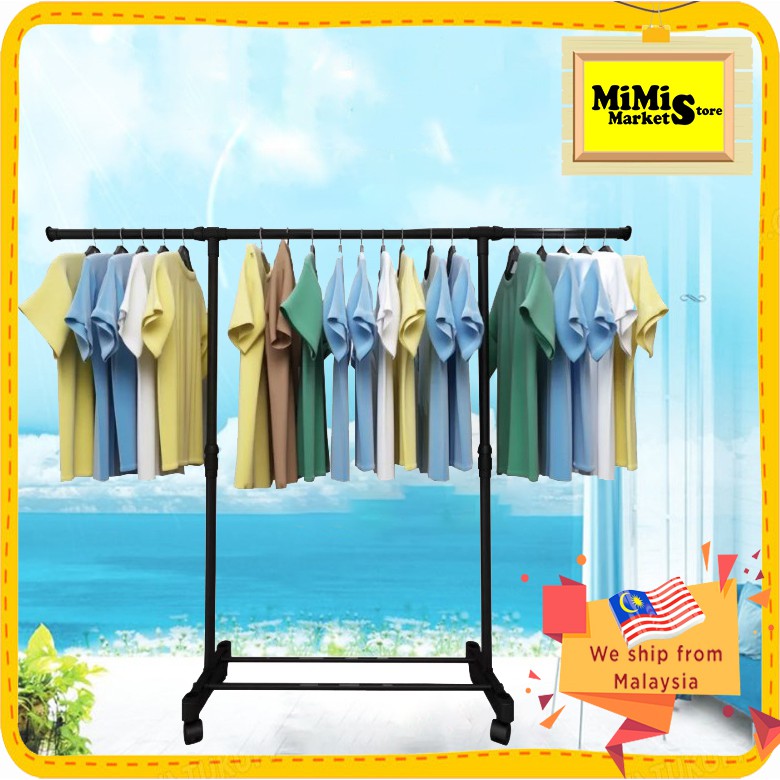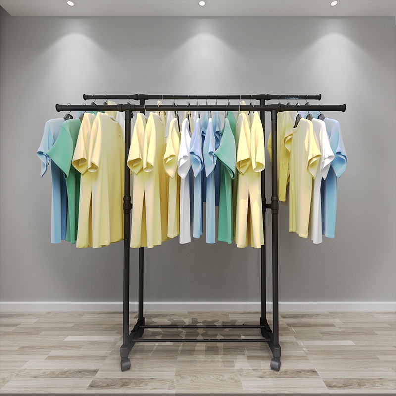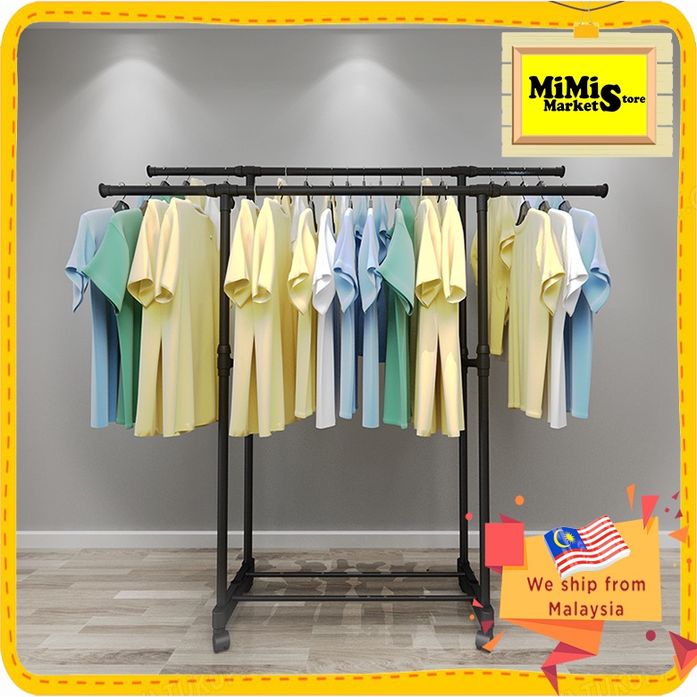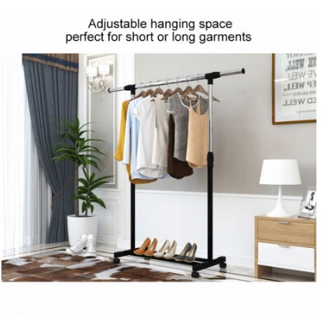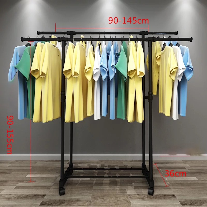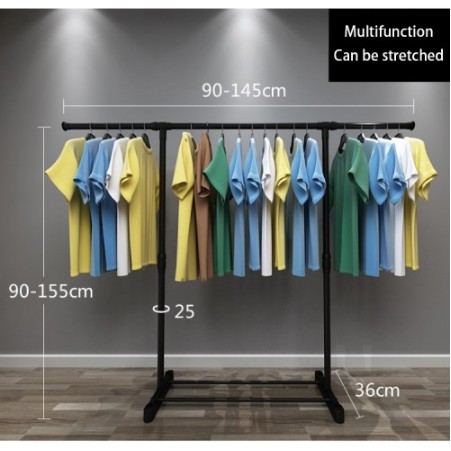 SINGLE / DOUBLE Stainless Steel Extendable Hanging Rack Clothing Garment Rack Floor-Standing Household Clothes Rod 3333