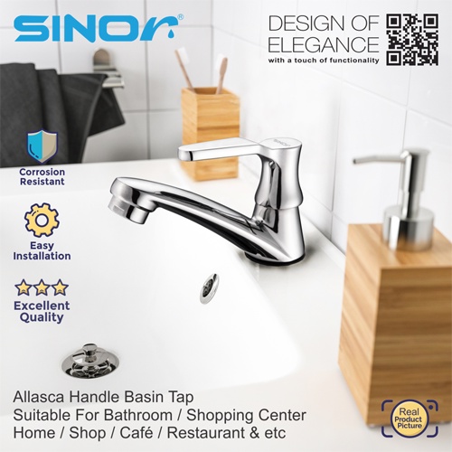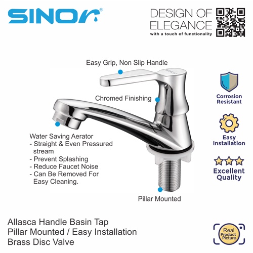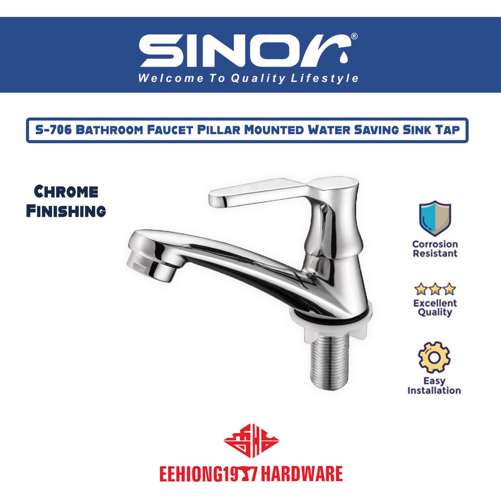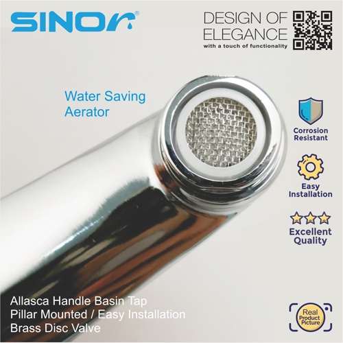 SINOR S-706 Allasca Handle Basin Tape Bathroom Faucet Pillar Mounted Basin Water Saving Sink Tap S706 s706 S 706 s 706