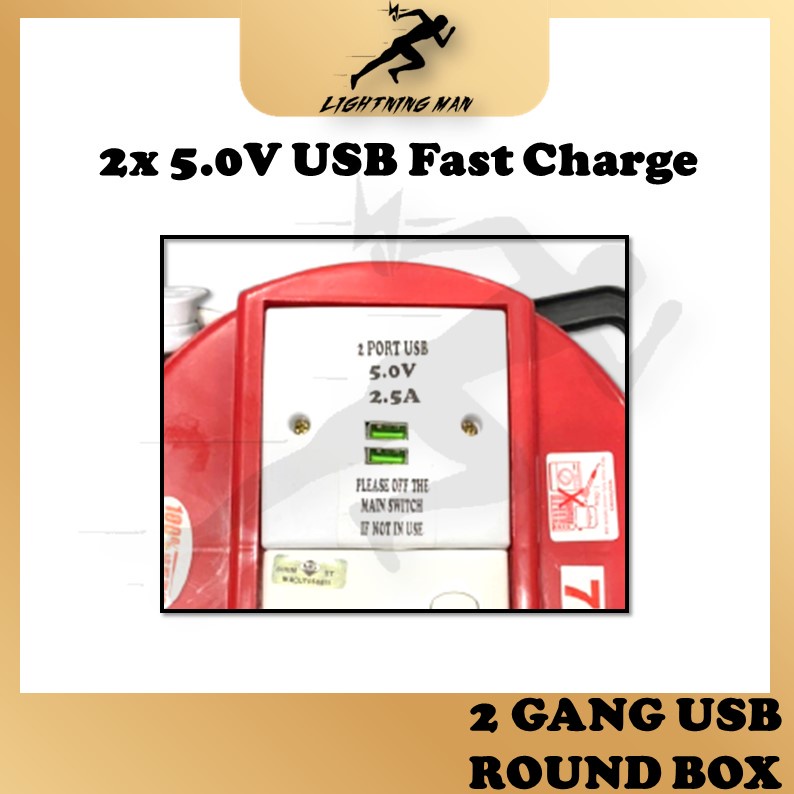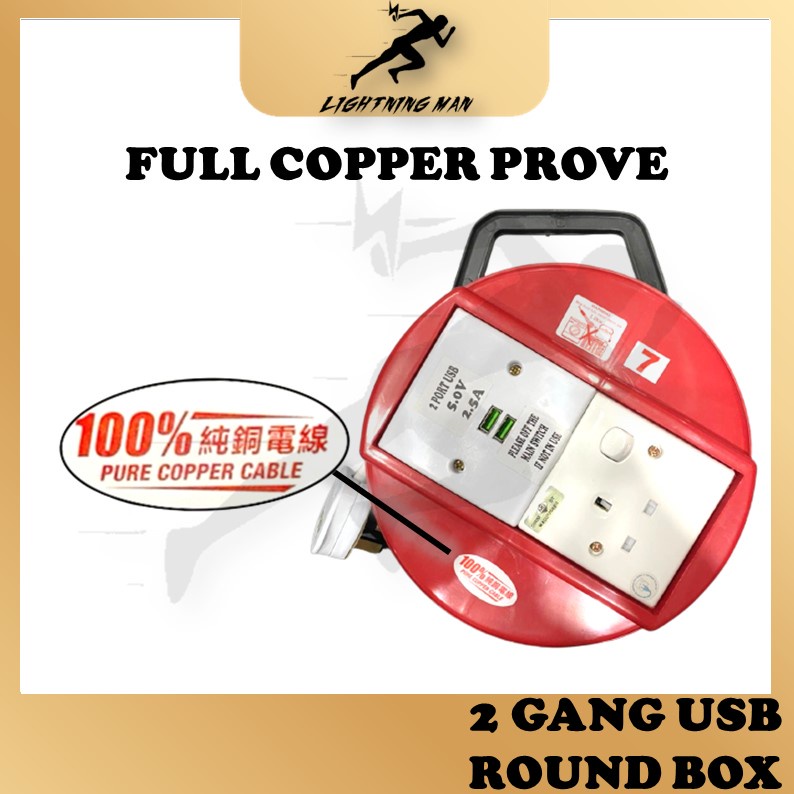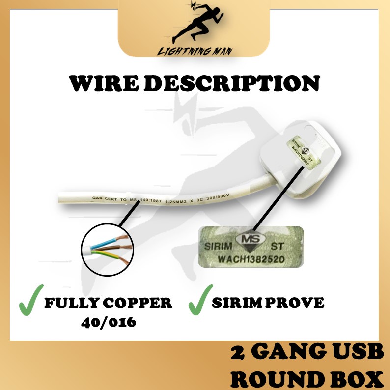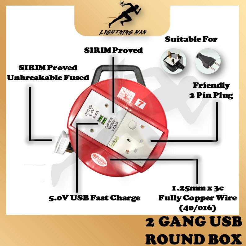SIRIM 2 Gang Round Extension Power Socket Extension With USB Ports Power Strip Adapter Socket Outlet USB Extension Plug