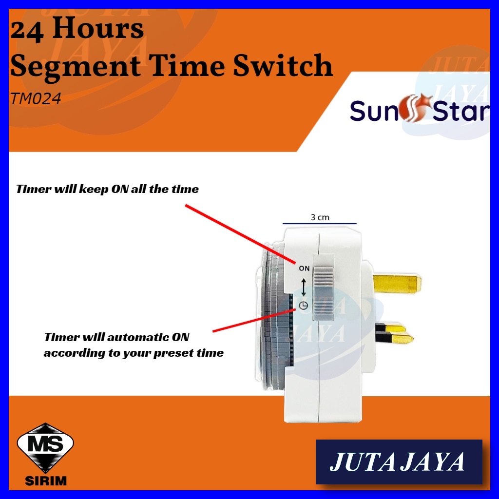 SIRIM 24 Hours Segment Time Switch Analog Timer Switch Socket Programme Programmable 3 Pin Plug