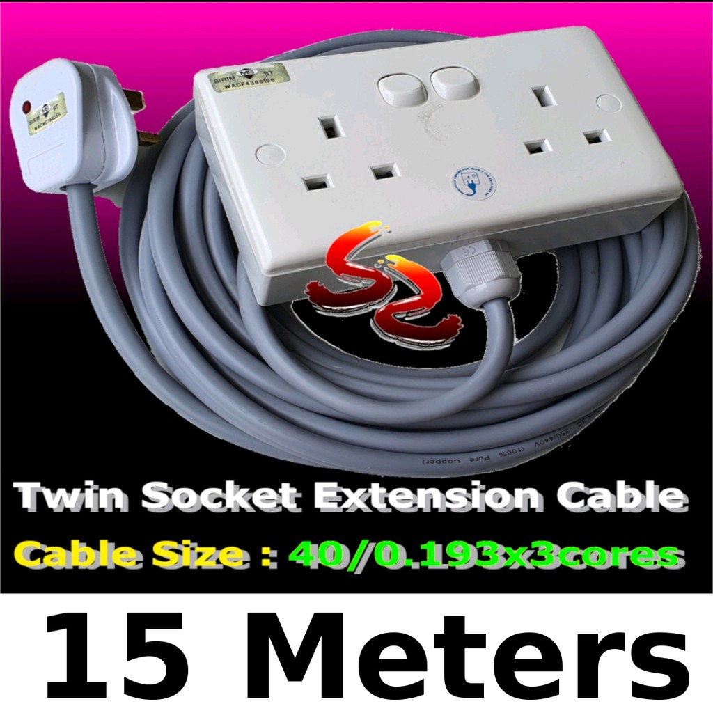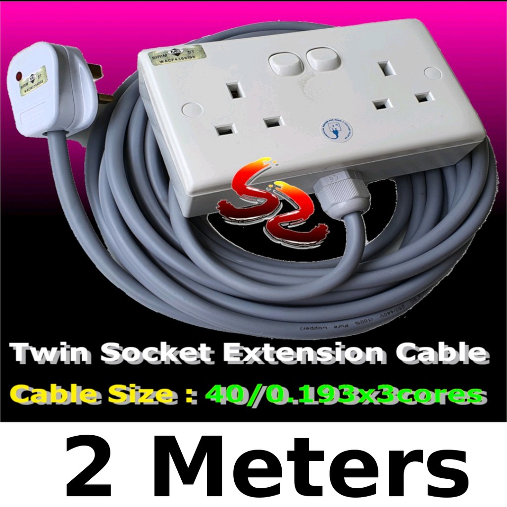 SIRIM APPROVED 2 Gang 13A Switched Socket Extension with NEON Light Indicator Double trailing socket 100% COPPER Cable