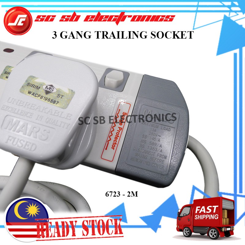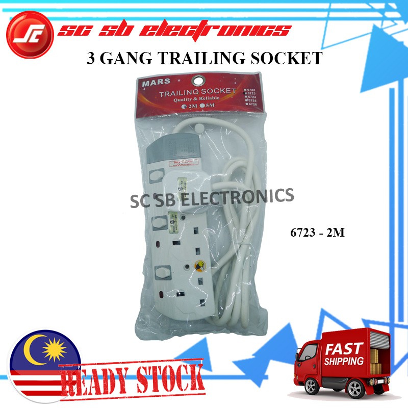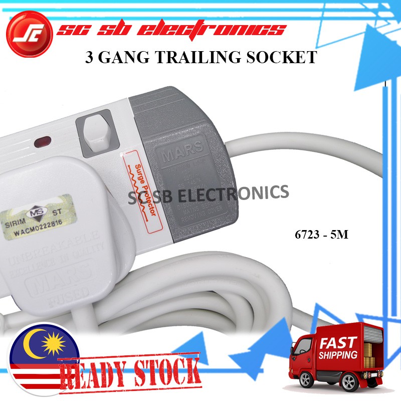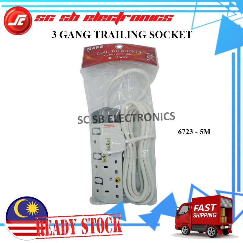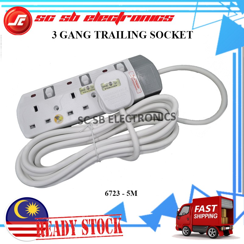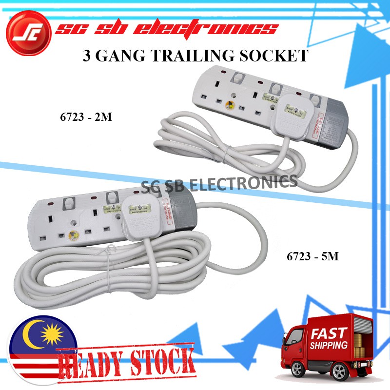 SIRIM APPROVED 2M / 5M 3 GANG TRAILING SOCKET / EXTENSION / EXTENTION - MARS 6723
