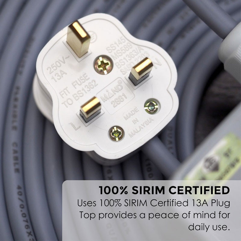 SIRIM Metal Clad Socket Extension Heavy Duty Extension Plug Heavy Duty Wire Trailing Socket Plug Wayar Extension Extent