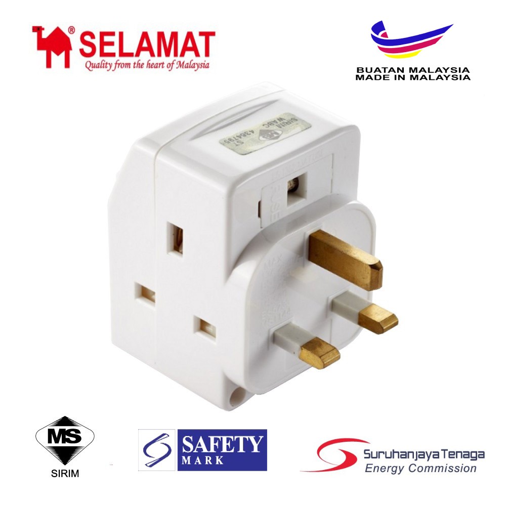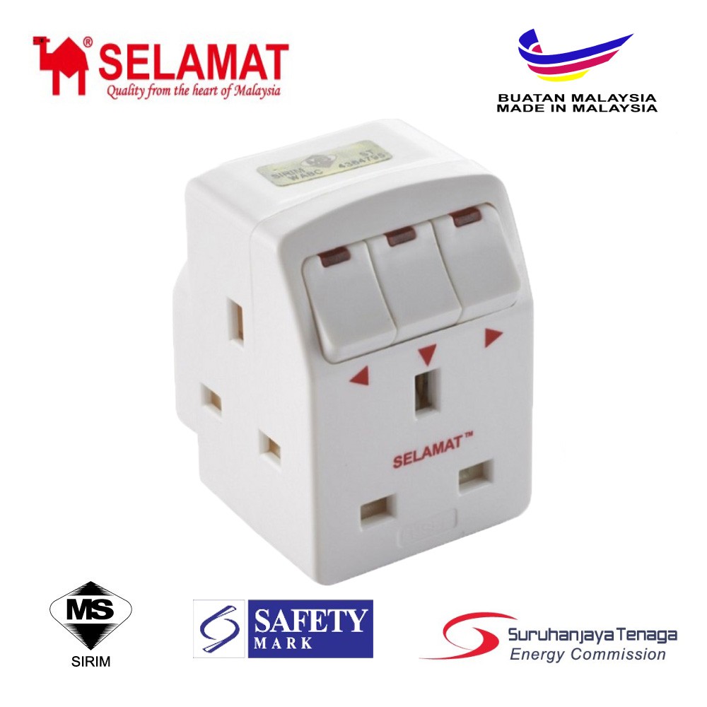 SIRIM SELAMAT 3 WAY ADAPTOR ADAPTER 3 Way Multi Adaptor with LED Neon Switch (SIRIM APPROVED)