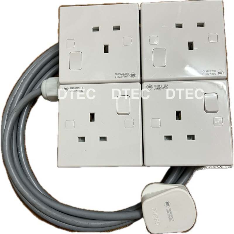 SIRIM Socket Extension Heavy Duty Extension Plug Heavy Duty Wire Trailing Socket Plug 3500W 4 Way Wayar Extension