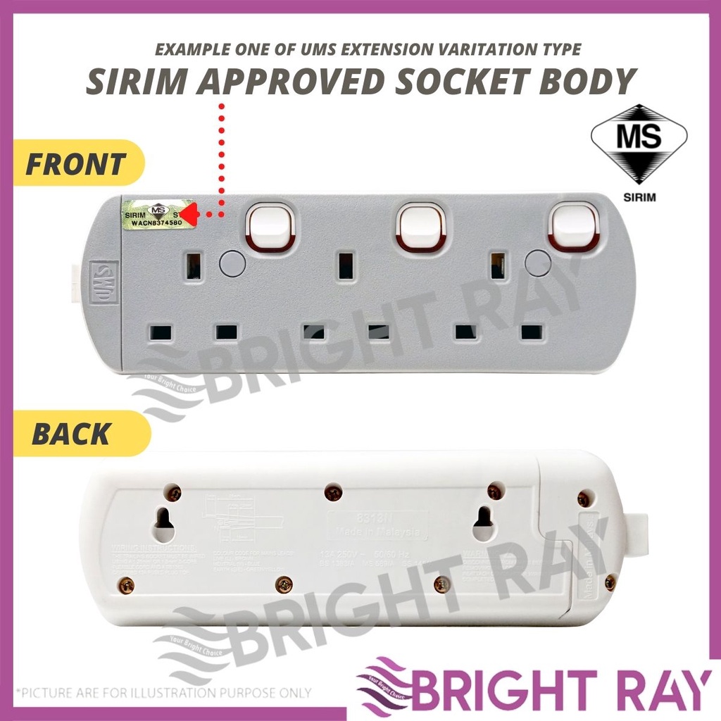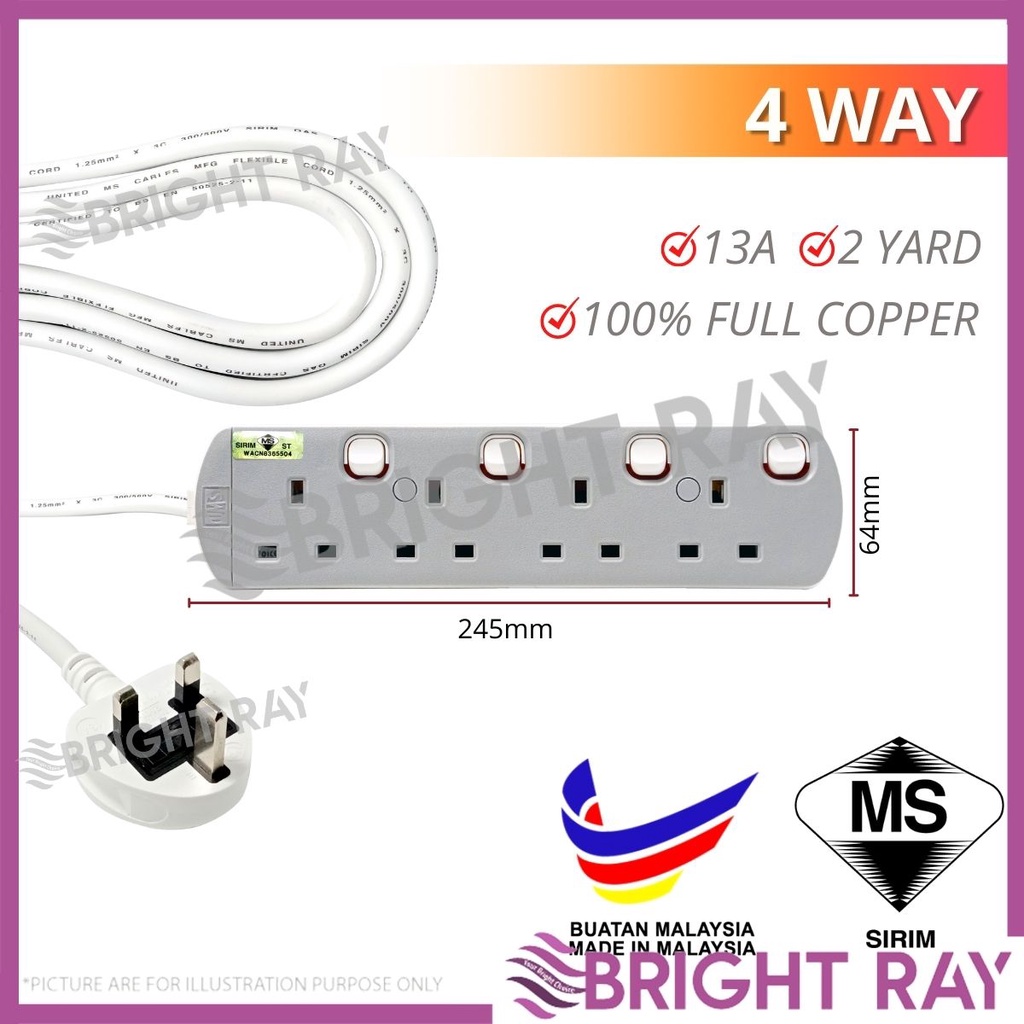 SIRIM UMS 8413-N 4 Way Plug 3 Pin Socket Extension Plug Trailing Socket Power Socket Extension Cord Wayar Extension