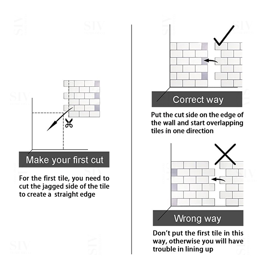 SIV 3D Tile Stickers Backsplash Subway Tiles Sticker Kitchen Bathroom Wallpaper Self-adhesive Waterproof Floor Sticker