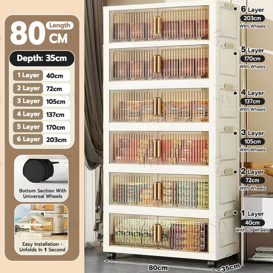 SIV 40-80cm Lowest Price Gap Storage Organizer Magnetic Door Foldable Storage Cabinet Double Doors Storage Box Stackable