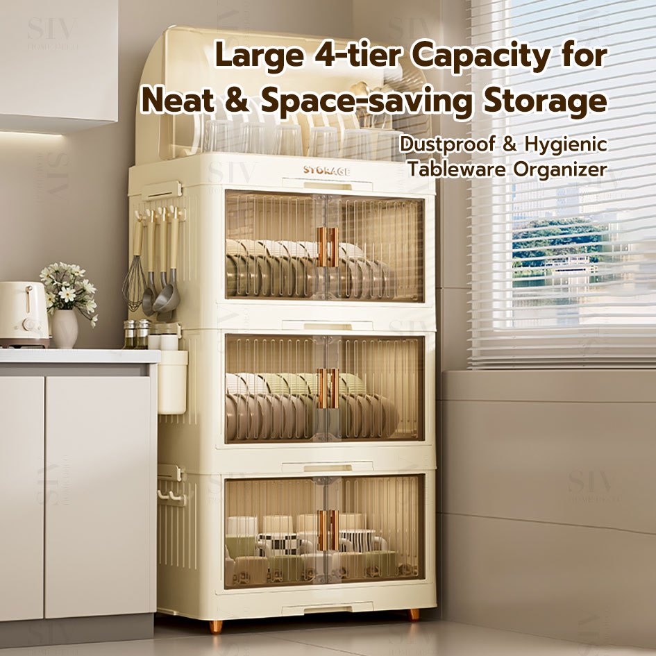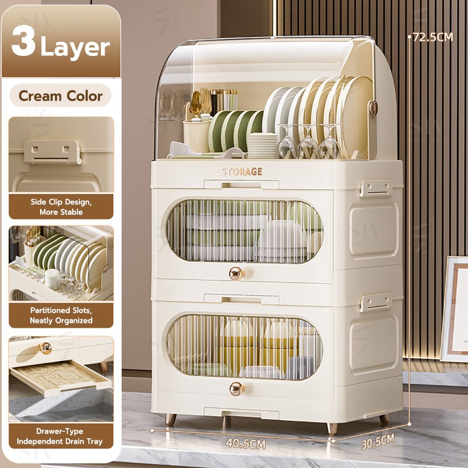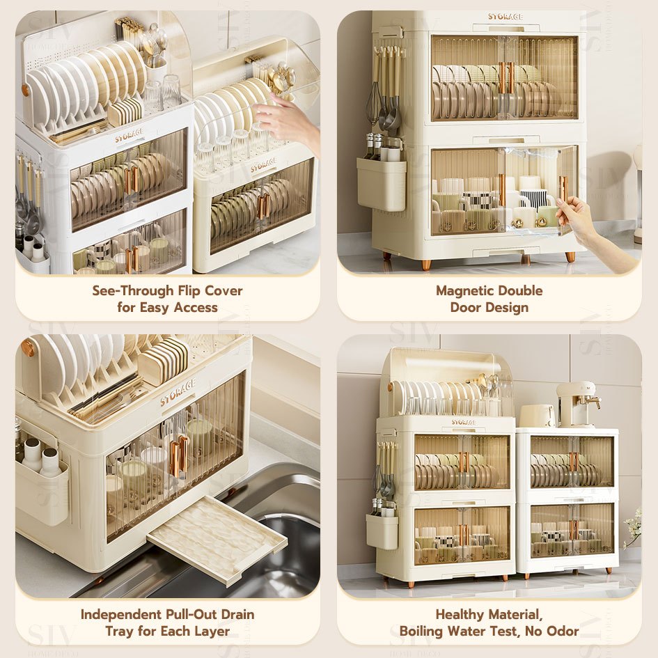 SIV Foldable Double Layer Dish Rack - Eco-Friendly Plastic, Stylish & Easy to Clean Kitchen Organizer