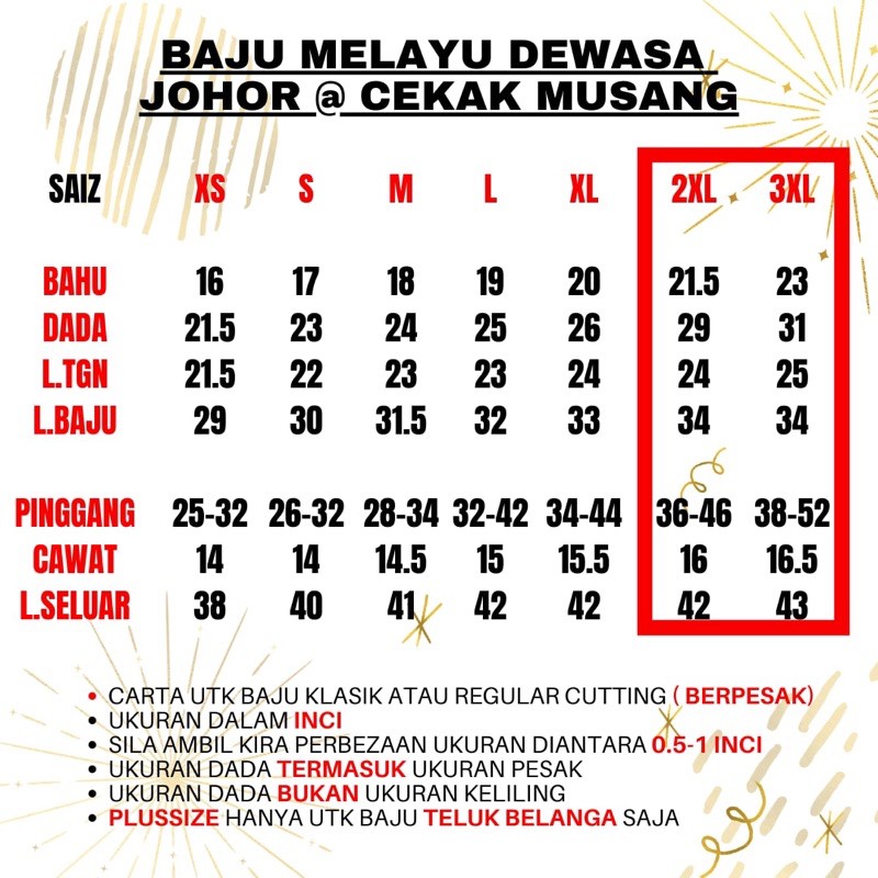 SIZE M - L -Baju Melayu Johor Teluk Belanga Dewasa Regular Fit.Baju Baju Melayu Johor Dewasa Pesak Traditional