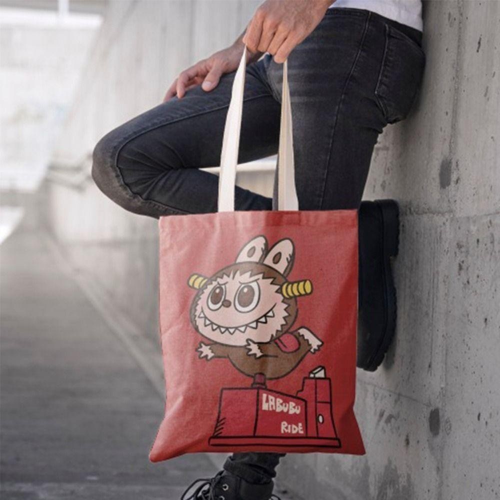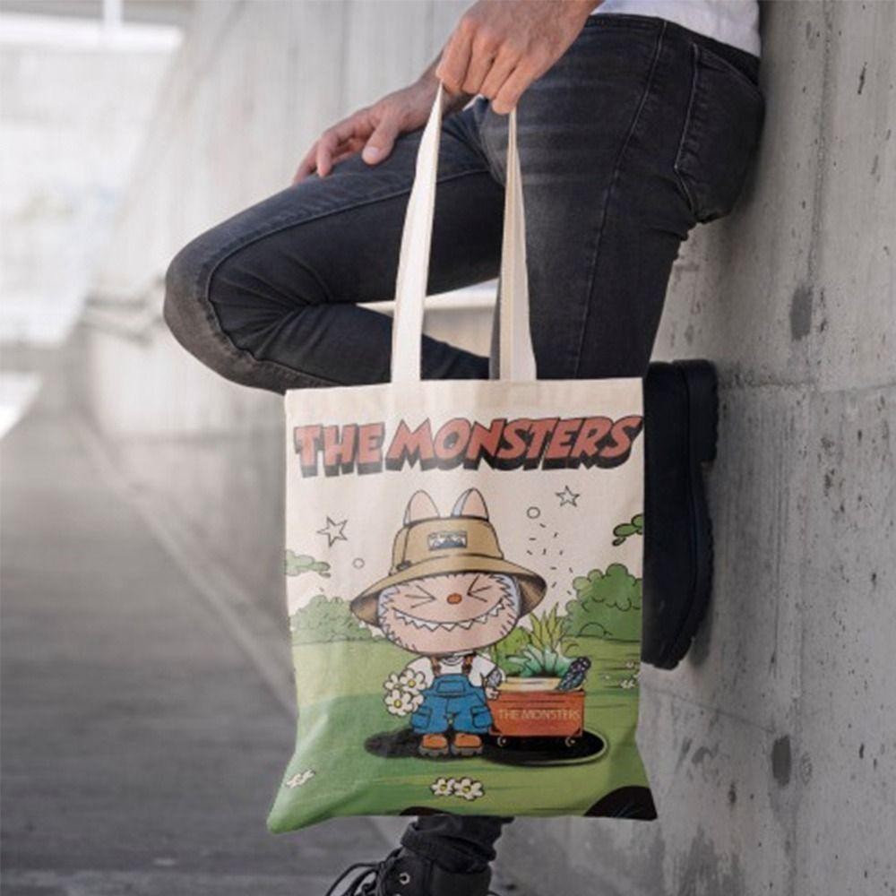 SK Labubu Shoulder Bag, Cotton Large Capacity Labubu Bags, Casual Printing Numb Cartoon Handbag