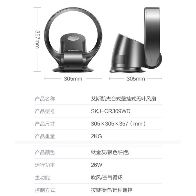 SK bladeless fan wall-mounted desktop multi-function Leafless fan can be remote-controlled