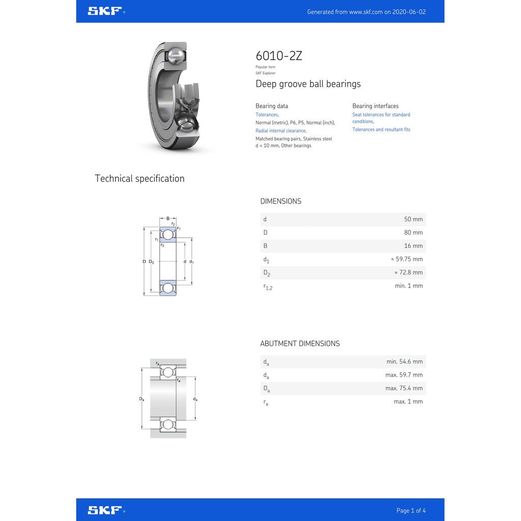 SKF 6010-2Z Deep Groove Ball Bearing (100% Original)