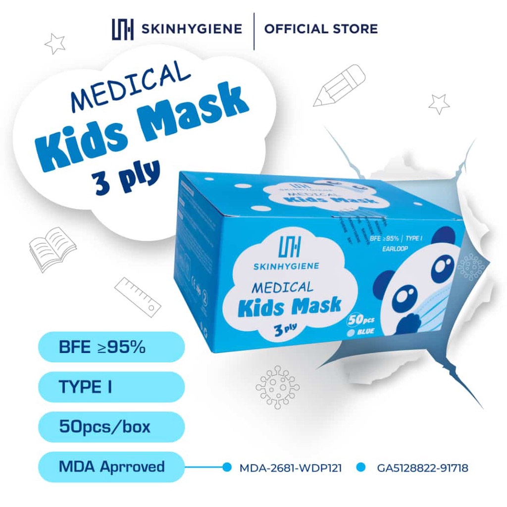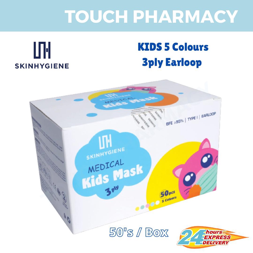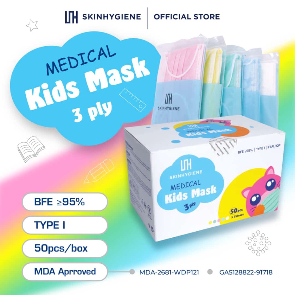SKIN HYGIENE KIDS MEDICAL FACE MASK 4PLY WHITE / 3PLY BLUE / 3PLY 5 COLOURS (50'S/BOX)