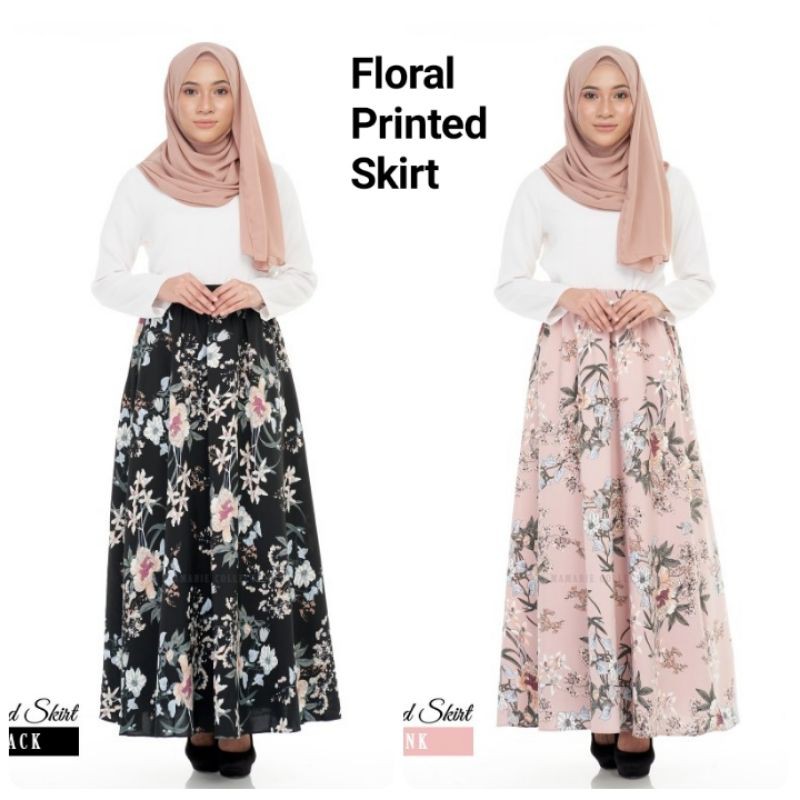 SKIRT LABUH/ SKIRT CORAK BUNGA LABUH/ SKIRT MUSLIMAH LABUH/ FLORAL PRINTED SKIRT MAMABIE