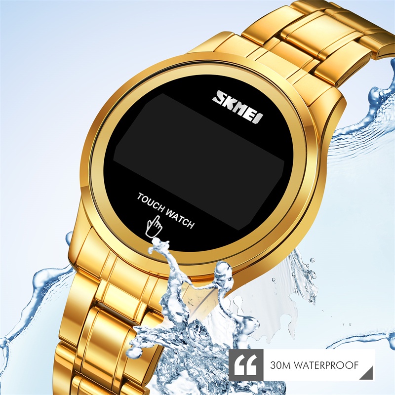 SKMEI Women LED Watches Fashion Touch Screen Green Light Digital Sports Wristwatch Luxury Steel Strap Waterproof Ladies Gift Clock