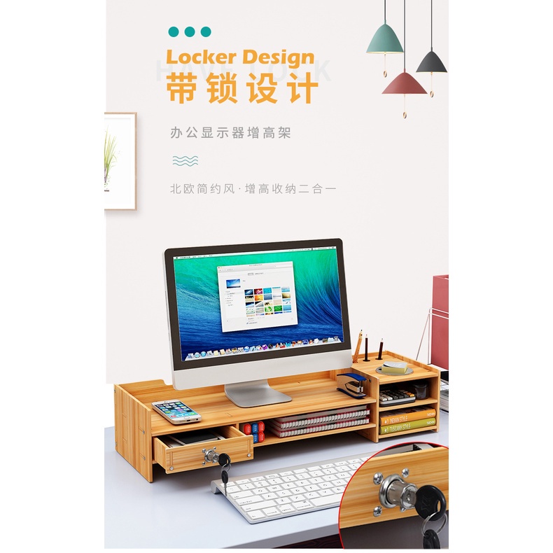 SKOI Computer Monitor Booster Rack Wooden Office Desk Storage Organizer Rack Storage Rack Storage Box