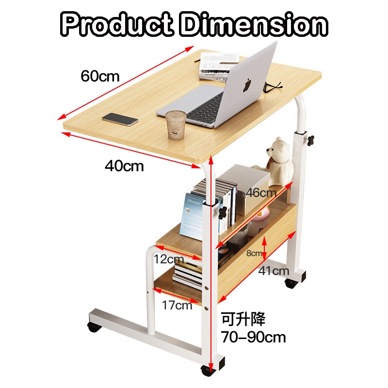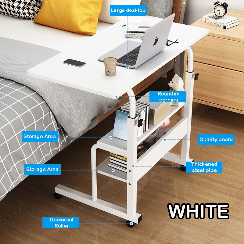 SKOI Movable Bedside Table Side Double Layer Bed Sofa Desk Laptop Lifting Table