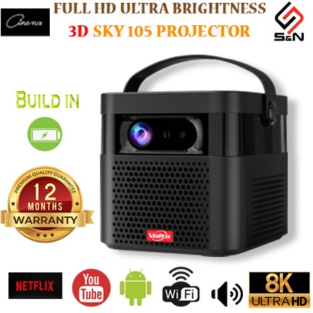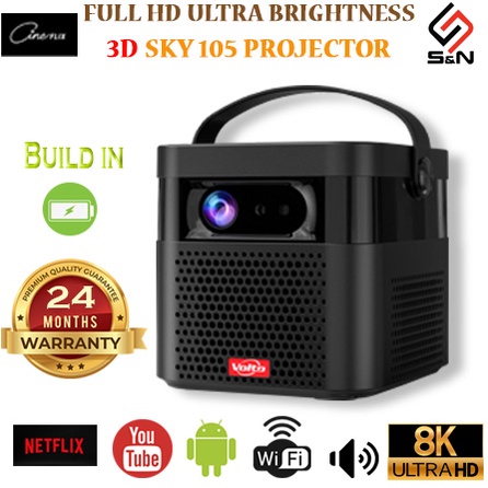 SKY 105 4K Mini Portable With Battery DLP Mini Projector Android Full Ultra HD 1080P for Phone WiFi For Home Classroom
