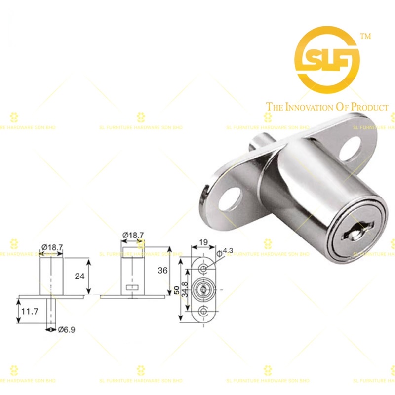 SLF PUSH LOCK High Quality Sliding Door Cabinet Door Sliding Door Press Lock Desk Cupboard Locker Kunci Perabot (1pc)