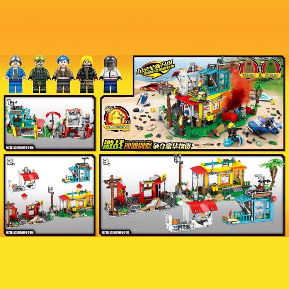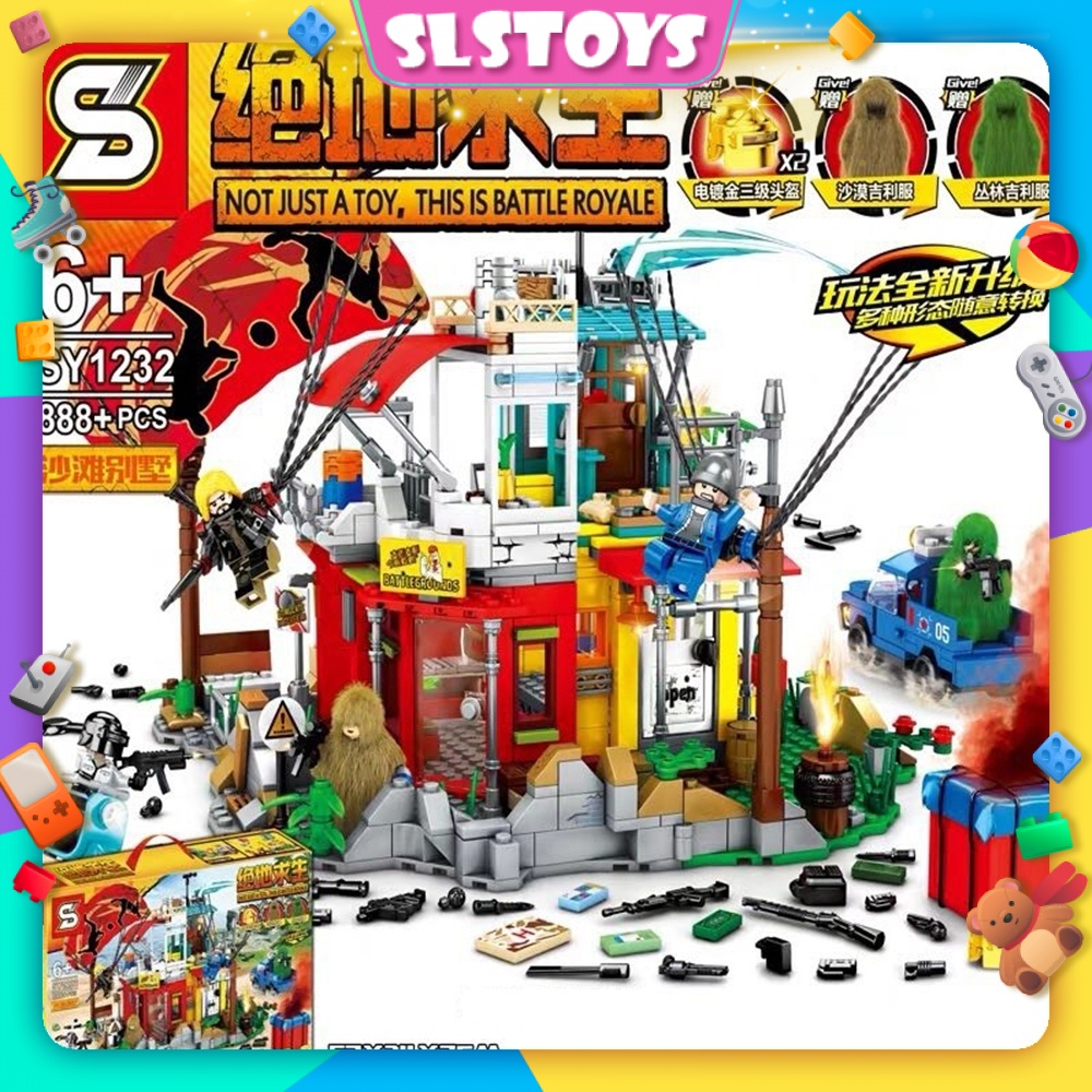 SLSTOYS SY Sheng Yuan SY1232 PUBG Battle Royale Camouflage Army Soldier War Building Blocks Bricks 888+pcs