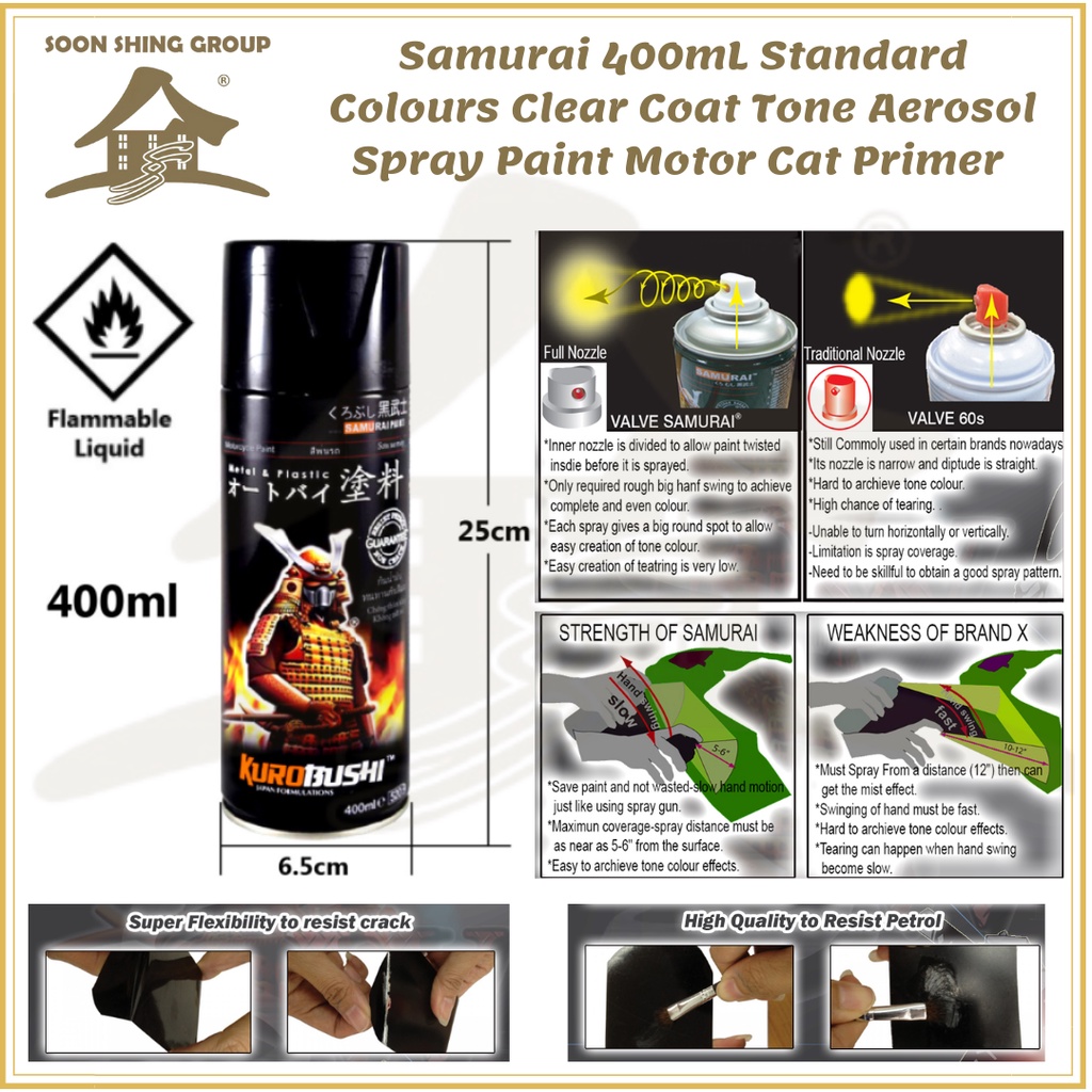 SM03 Samurai Spray Paint Metallic Colors 400ml / Aerosol Spray Paint / Cat Primer/ Cat Spray Basikal/ Cat Spray Motor