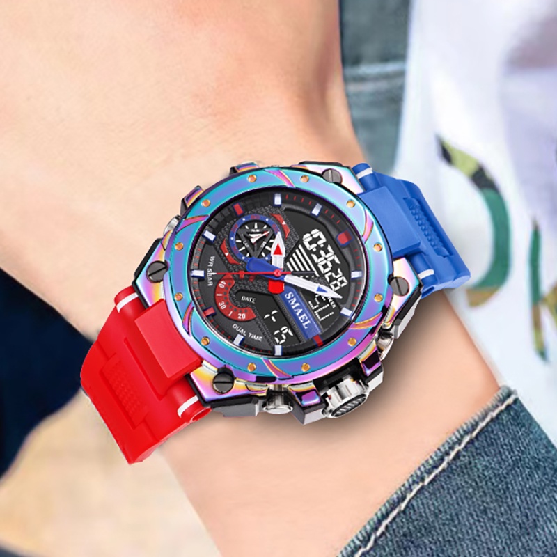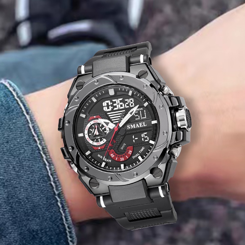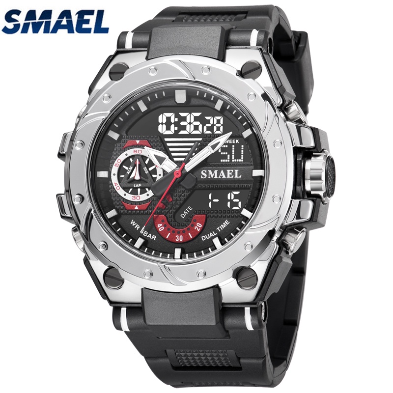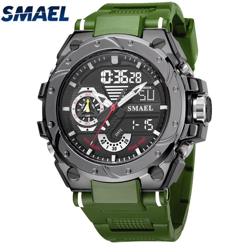 SMAEL Brand Luxury Men's Watches Alarm Fashion Quartz Digital Dual Display Military Original Casual Men Watch 8060