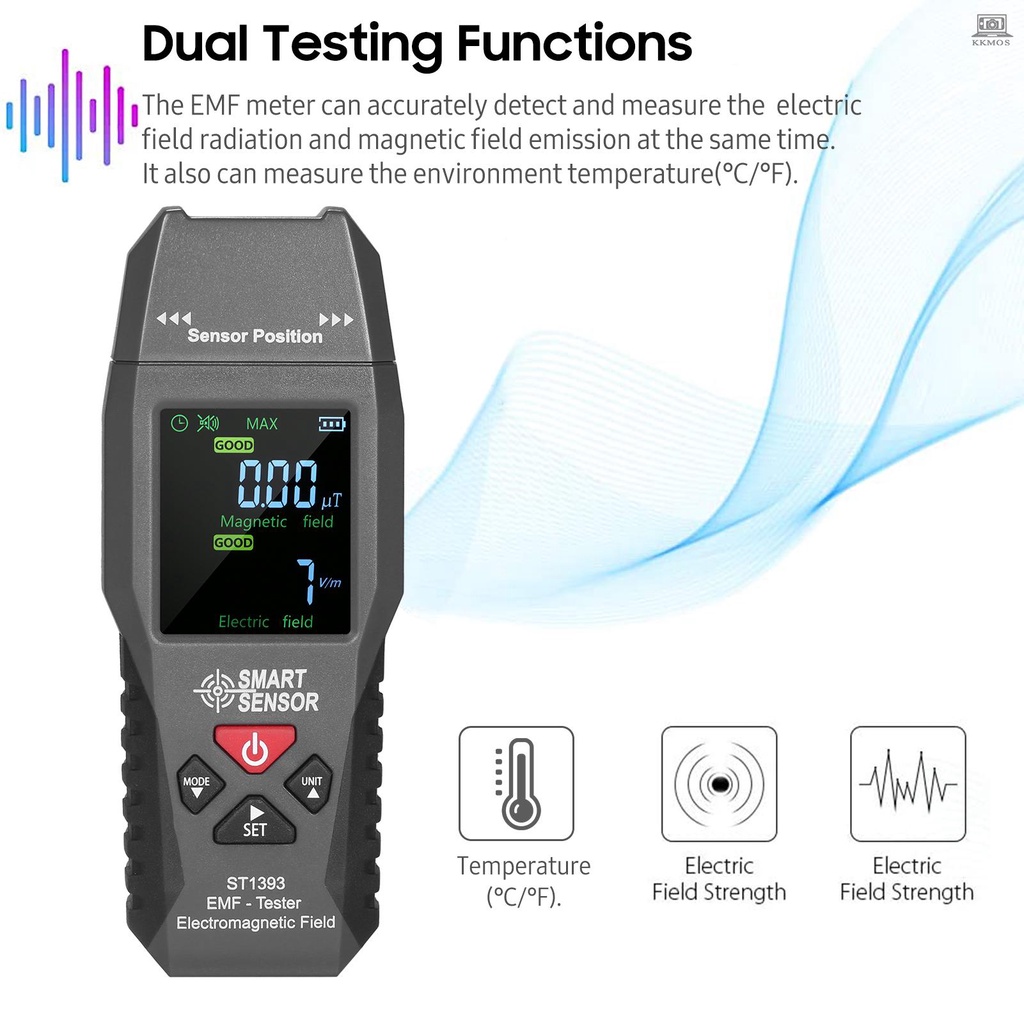 SMART SENSOR ST1393 EMF Meter Electromagnetic Field EMF Detector Handheld Mini Digital LCD Electromagnetic Field Radiation Tester Tolomall
