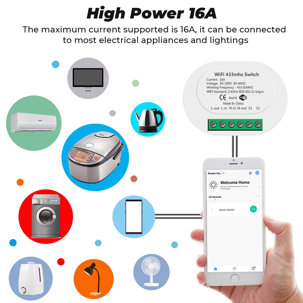 SMATRUL 16A Tuya WiFi RF433+33MHZ RF 10-key remote control Smart Wireless Switch Light Mini 2 Way Module On Off Timer Breaker For Google Home Alexa Tmall Genie