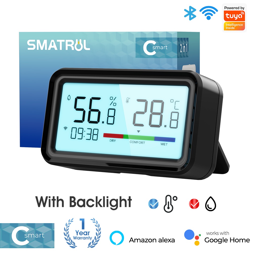 SMATRUL Tuya Smart Home Digital Wireless Wifi Indoor Hygrometer Thermometer Sensor Monitor With Backlight Remote App Voice Alexa Google Home Notification Alarm