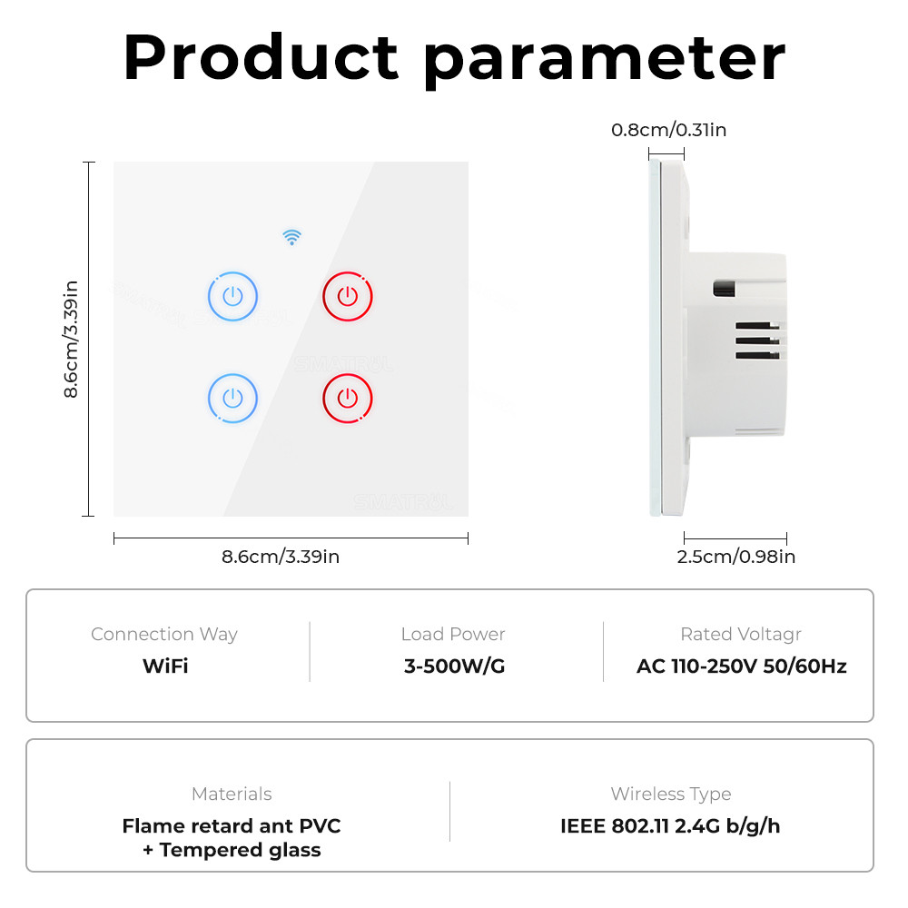 SMATRUL Tuya Smart Switch WiFi Smart Fan Light Smart Switch High Sensitivity Smart Home Control Panel Wall Touch Timer Switch Wireless Voice Remote Control by Google Home & Amazon Alexa tmall genie(single fire line & neutral and Neutral)