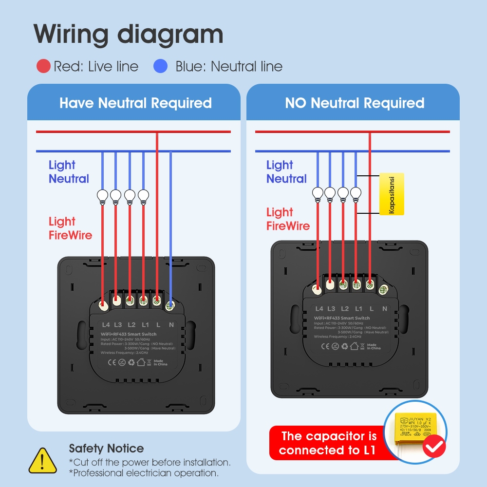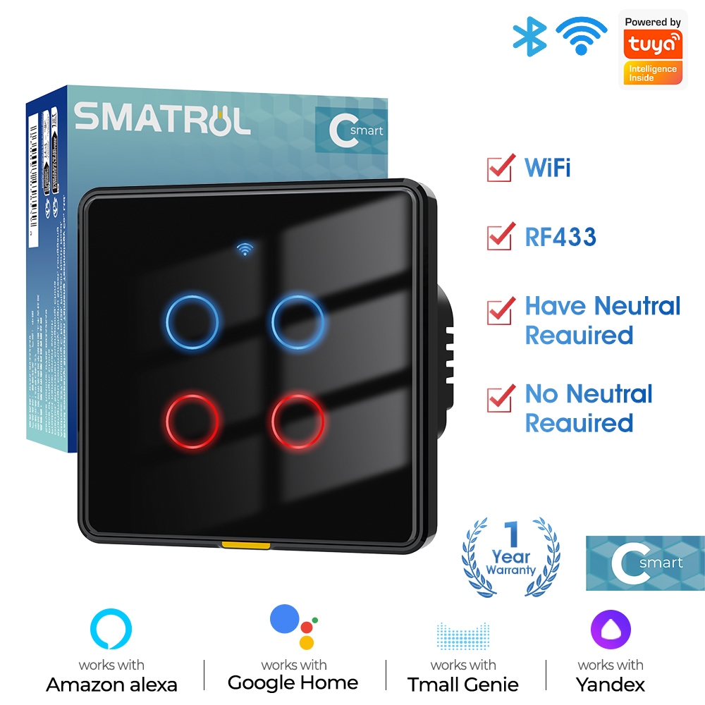 SMATRUL Tuya Smart Switch Wifi Remote Smart Switch Smart Home Control Panel Timer Touch Button RF433 Wall Switch 2-in-1 Neutral & No Neutral Alexa Google Home