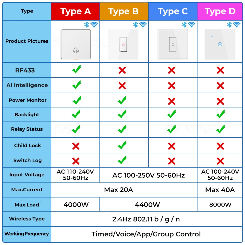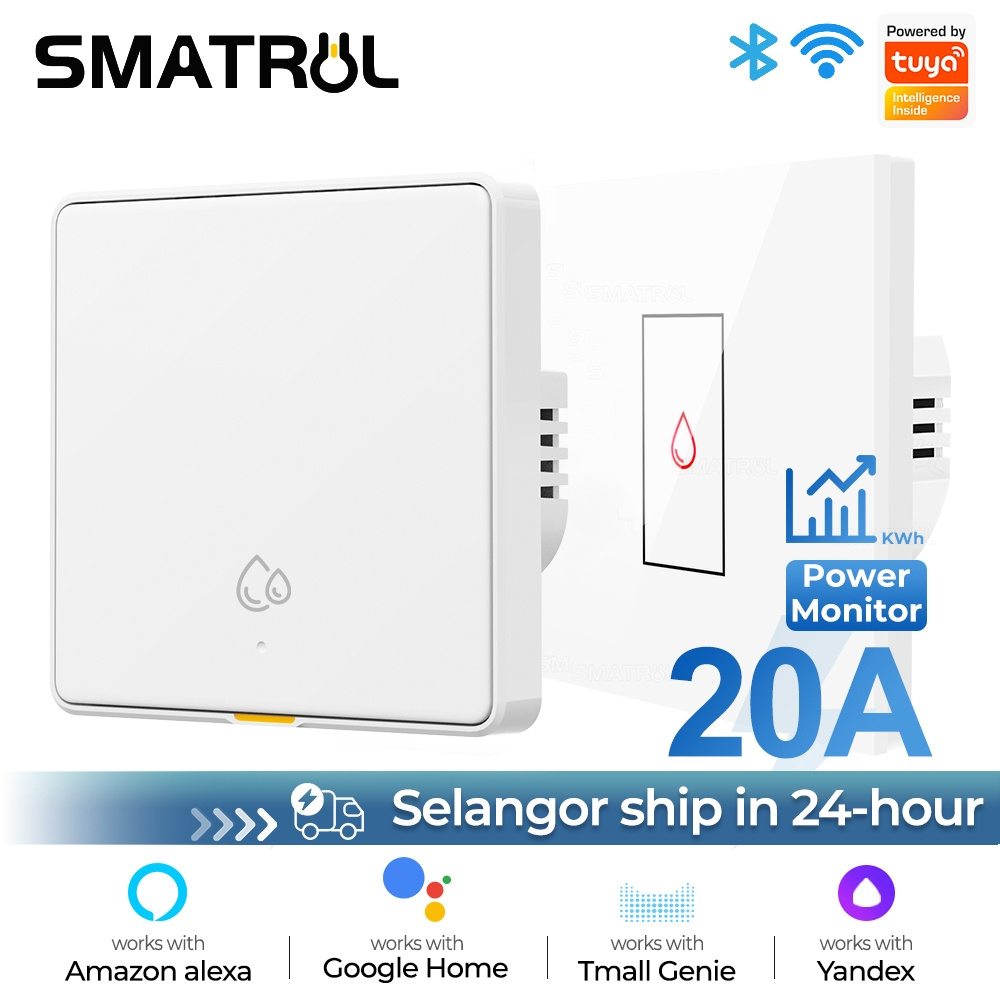 SMATRUL Tuya WiFi Smart Switch 20A Water Heater Switch Aircond Switch Power Monitor Boiler Switch Wireless Tuya Touch Wall Water Heater Boiler Air Conditioner Light Timing EU Wall Electrical