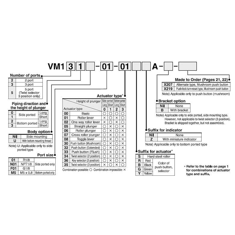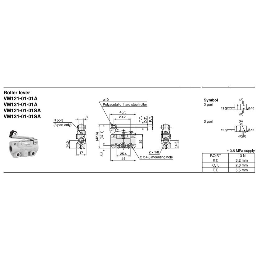 SMC Mechanical Roller Valve Series VM100/Side Ported Model: VM131-01-01A 2/3 Port