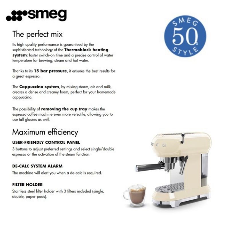SMEG 50's Retro Style Espresso coffee machine -Black ECF01BL